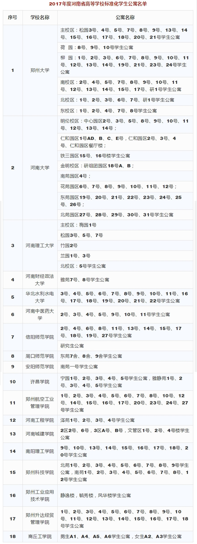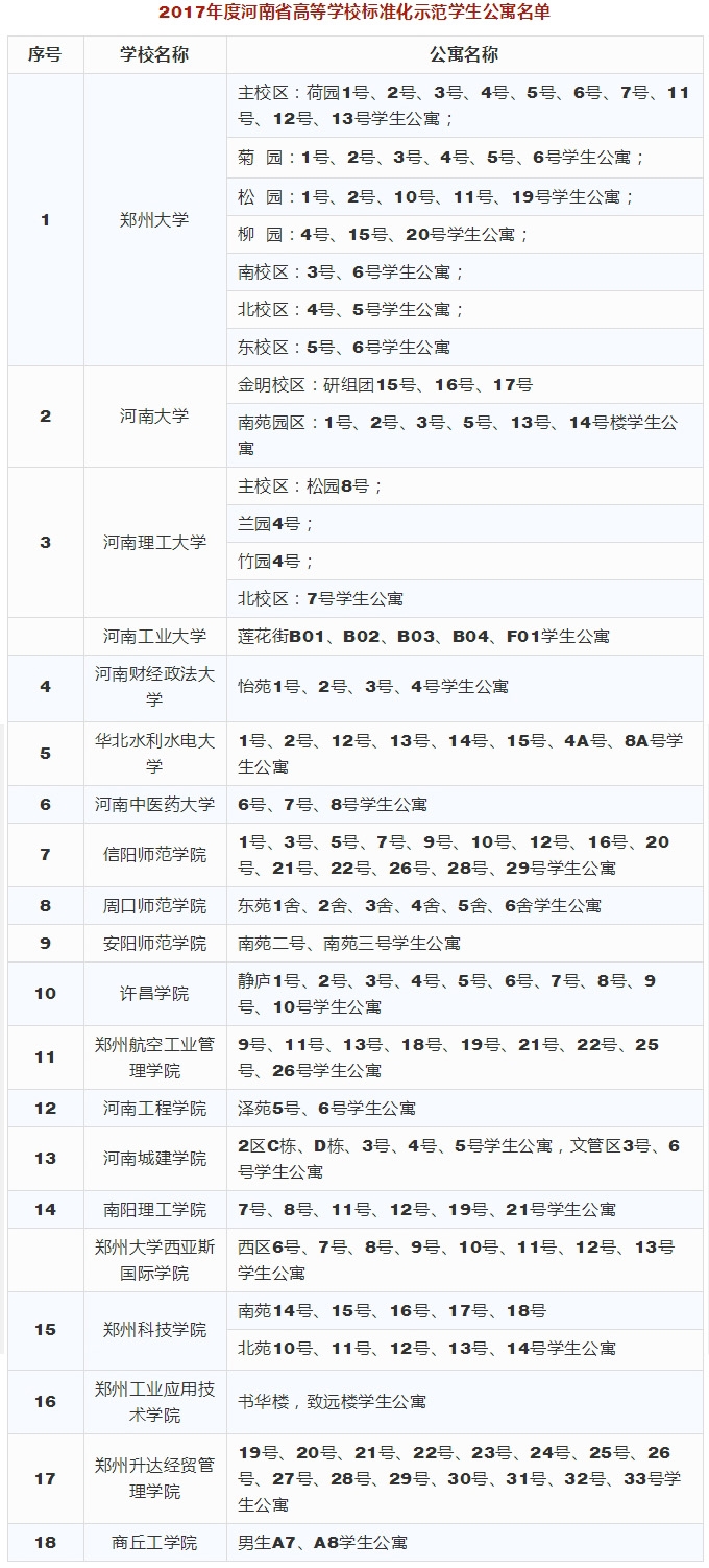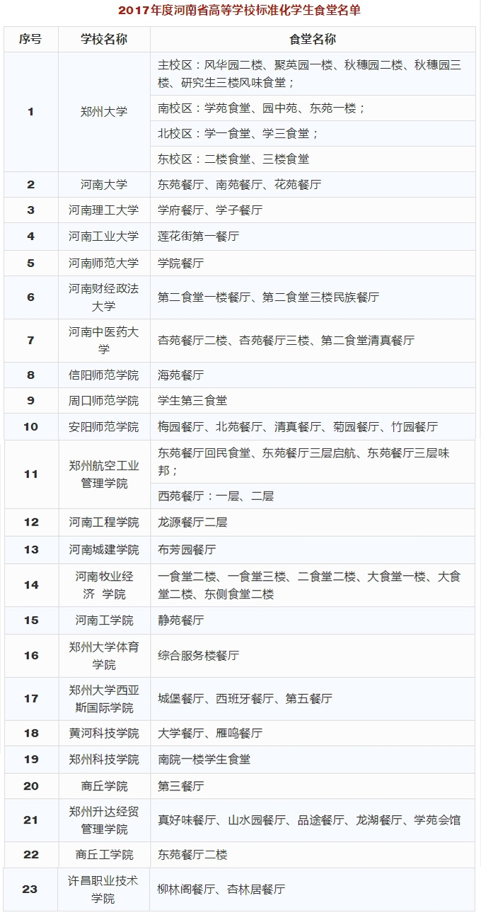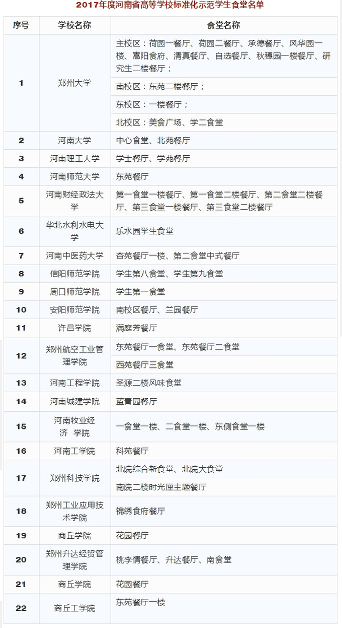 根据**组推荐结果,经研究,4月23日,河南省教育厅对2017年度河南省高等学校标准化学生公寓和标准化学生食堂评审结果进行了公示。快看你家学校公寓和食堂入选了没!